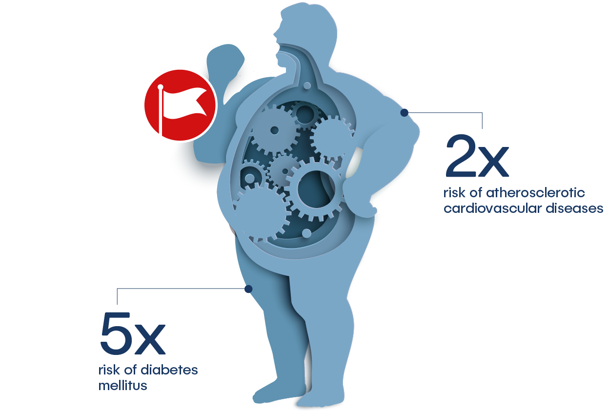 Patients with metabolic syndrome are estimated to have a 2x increased risk of atherosclerotic cardiovascular diseases and a 5x risk of diabetes mellitus, as compared to the general population!